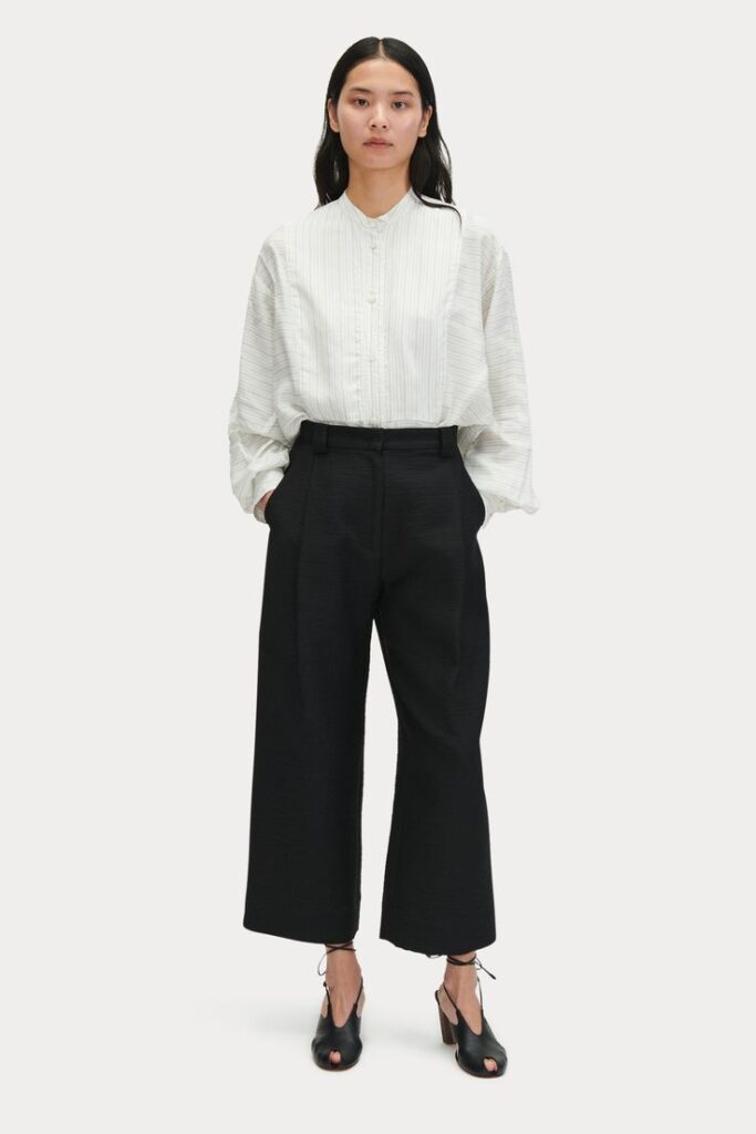 สำหรับคนที่เบื่อกางเกงทรงเรียบๆ แล้วอยากเพิ่มลูกเล่นเล็กๆ น้อยๆ ให้กับลุคทำงาน ลองกางเกงผ้าไหมแบบมีจีบหน้า ทรงนี้จะดูมีความเฟมินีนขึ้นมานิดนึง ใส่กับเสื้อแบบไหนก็ทำให้ดู “ตั้งใจแต่งตัว” ได้ทันที