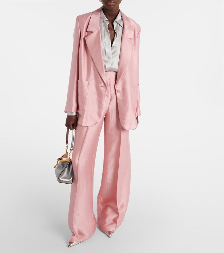 กางเกงผ้าไหมขากว้างเป็นหนึ่งในทรงยอดนิยม เพราะใส่แล้วให้ลุคที่ดูเรียบแต่มีพลัง จะจับคู่กับเสื้อเชิ้ตสีพื้นเรียบๆ หรือเบลาส์ลายลูกไม้ก็ได้หมด เหมาะกับวันประชุมที่อยากแต่งตัวให้ดูมีน้ำหนัก แต่ยังคงความสบายไว้